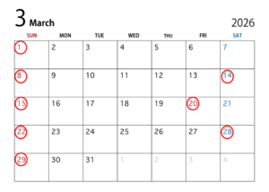 2026年2月26日 / 最終更新日時 : 2026年2月26日 トモエ自動車 お知らせ 【3月のお休みについて🎎】トモエ自動車は、 毎日曜・祝日・第2土曜日・第4土曜日を定休日とさせていただいております。 3月の土曜日につきましては、 14日(土)・28日(土)を 休業日とさせて頂きます。 どうぞよろしくお願いいたします。