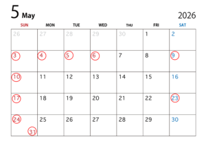 2026年4月27日 / 最終更新日時 : 2026年4月27日 トモエ自動車 お知らせ 【5月GWのお休みについて🎏】5月につきましては、3日(日)~6日(水)、 9日(土)・10日(日)、 17日(日)、 23日(土)・24日(日)、 31日(日)を 休業日とさせて頂きます。どうぞよろしくお願いいたします。